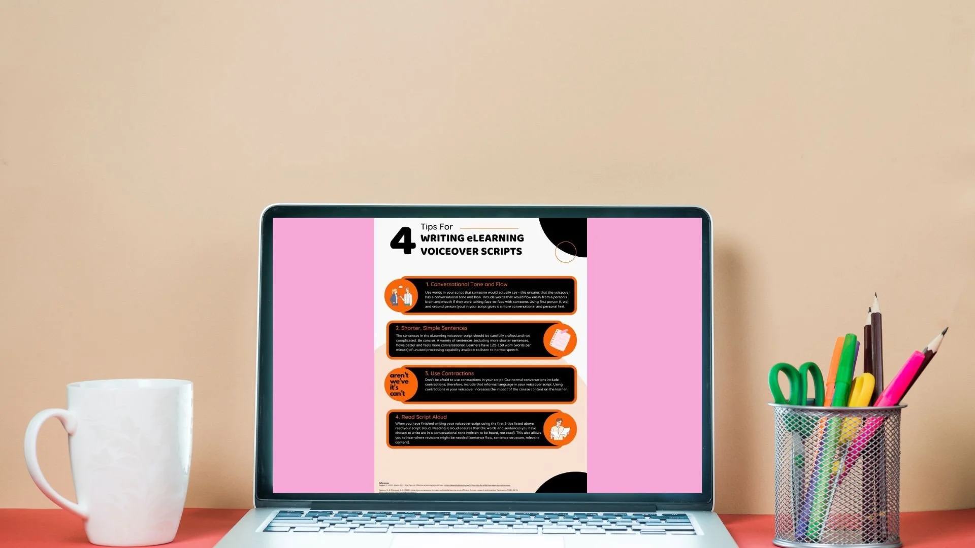 In November 2023, I designed this job aid for emerging instructional designers to use as a job reference after completing the What Are You Saying? An Introduction to Voiceovers in eLearning course. This job aide lists the four tips instructional designers should follow when writing voiceover scripts for eLearning courses.